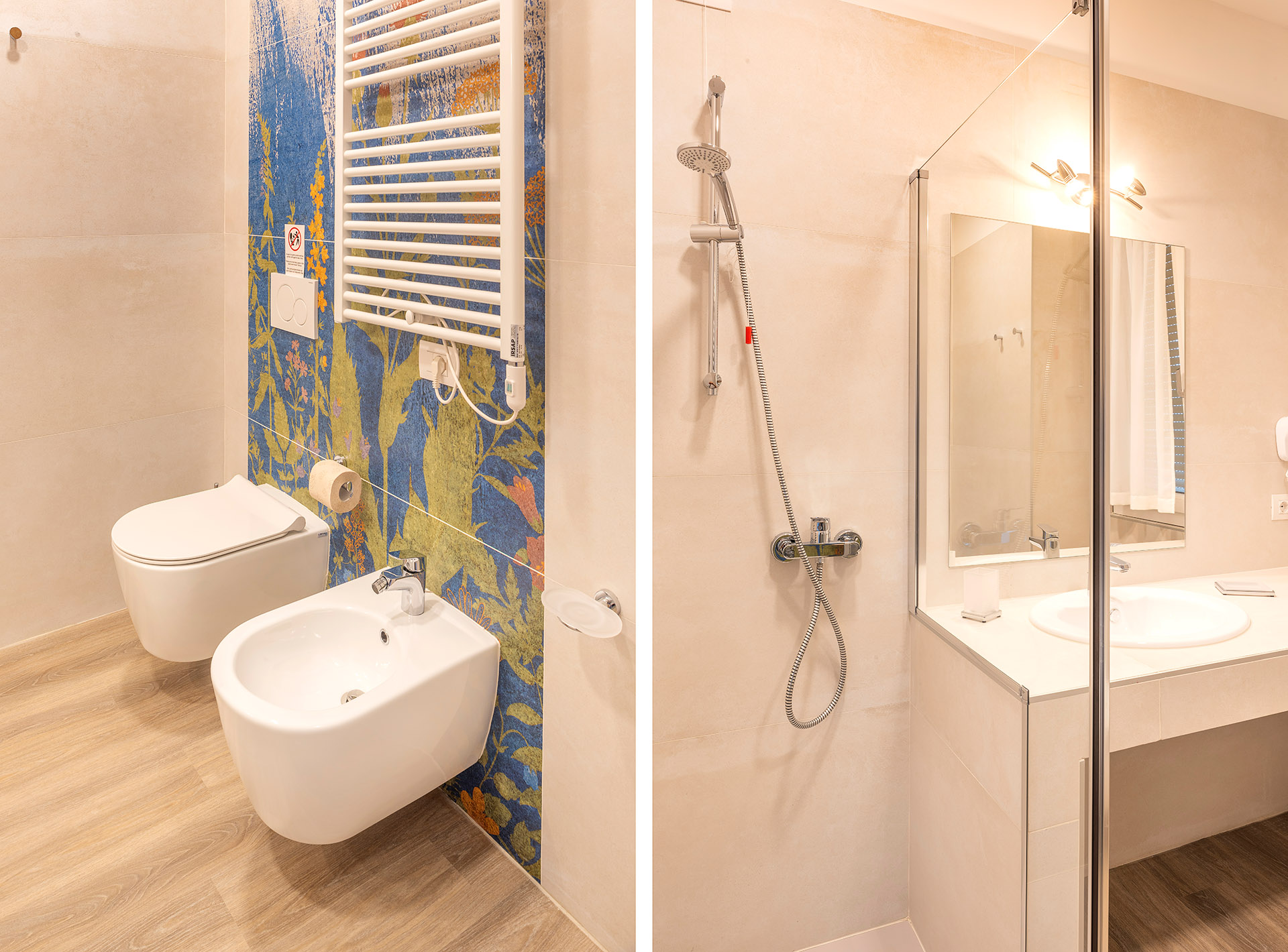 Apartmán Comfort (cca 35-40 m2, min. 1 osoba / max. 4 osoby): sprcha nebo vana / WC, fén, TV, telefon, trezor, klimatizace (v provozu v červenci a srpnu), lednička, kuchyňský kout, ložnice s manželskou postelí, rozkládací pohovka, balkon nebo terasa